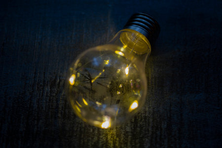 This stunning close-up image showcases a light bulb filled with sparkling particles, creating a magical effect against a dark background, ideal for artistic projects.