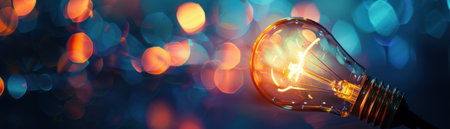 A glowing light bulb with colorful bokeh lights in the background, representing creativity, innovation, and bright ideas in a visually appealing composition.