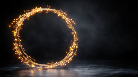 Magical glowing circle with warm lights in a dark background, perfect for creative design and festive themes, symbolizing unity and harmony