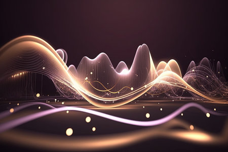 Colorful neon sound wave peaks with glowing particles against a dark starry background.