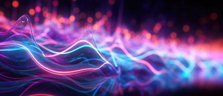 a vibrant abstract background with neon lights and waves, perfect for modern designs and technology themes