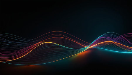 Vibrant light waves create mesmerizing pattern against dark background, showcasing blend of colors that evoke sense of movement and energy. flowing lines suggest rhythm and dynamism, captivating