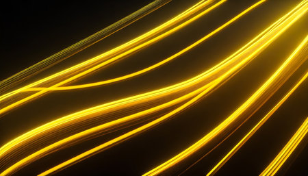 3d render abstract neon wallpaper yellow glowing lines over black background streaming energy