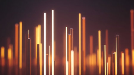 Sharp orange neon light lines intersect dynamically across a dark, textured background creating a vibrant...