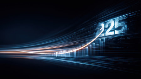 Futuristic abstract background featuring glowing numbers and digital elements symbolizing rapid growth and technological progress in data visualization themes.