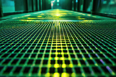 abstract background of a metal grid with light and shadow in the dark