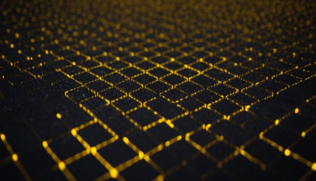 Elegant array of reflective squares with golden light accents