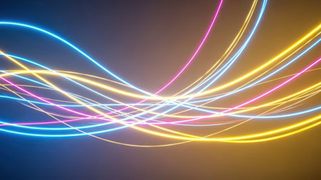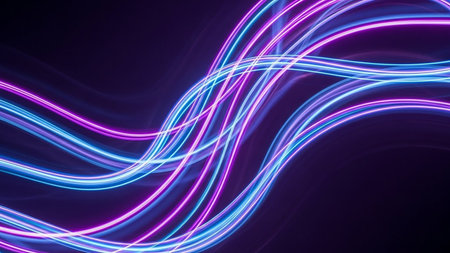 This vibrant neon fiber optic lines abstract texture background features dynamic speed lines and modern high-tech patterns, ideal for futuristic design projects, technology themes, or digital