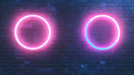 Modern neon circles on dark brick wall for contemporary design inspiration