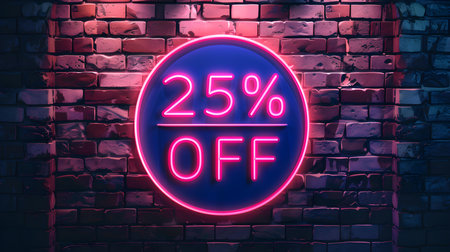 Pink Neon '25% OFF' Sign on a Brick Wall