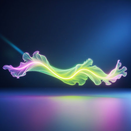 Colorful waves of light ripple across a dark background, creating an enchanting and dynamic visual experience.