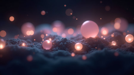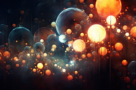 Glowing spheres in an abstract background creating a magical atmosphere with glittering particles