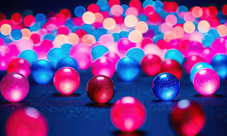 Luminous orbs create a vibrant overlay texture in dynamic color patterns