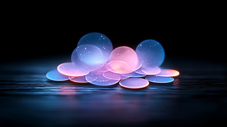 Abstract floating orbs emitting soft neon light, generative ai