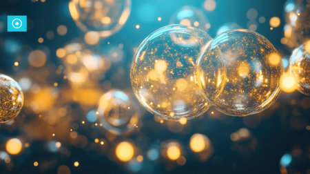 Discover a captivating image featuring shimmering bubbles with glowing particles set against a dreamy abstract background. Perfect for projects in science or art.