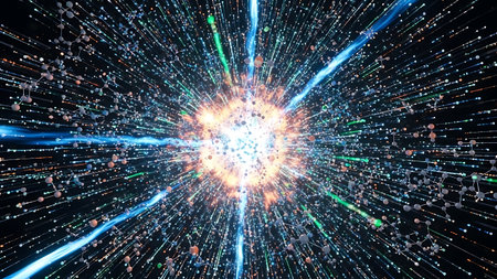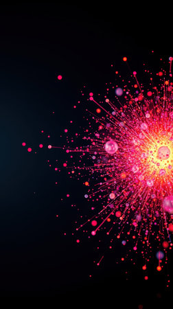Colorful abstract representation of a burst with particles and rays on a dark background