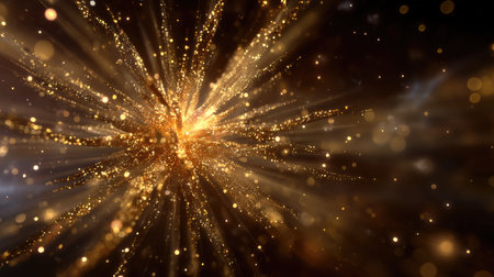 A mesmerizing abstract representation of golden light exploding with sparkles and radiance against a dark background, perfect for art and design projects.