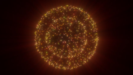 A glowing sphere made up of colorful particles, radiating light in all directions, creating a captivating cosmic effect.