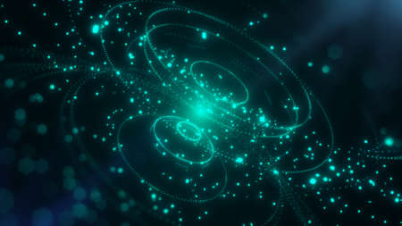 Abstract background with the movement of luminous particles. Digital technology connection concept.