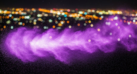 Iridescent Purple Glitter Texture with Sparkling Lights. Generative AI.