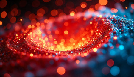 Abstract swirling particles with bright bokeh lights background illustration