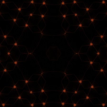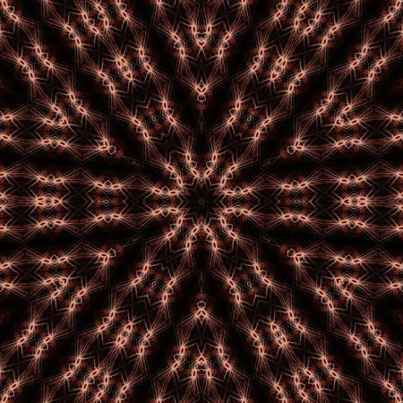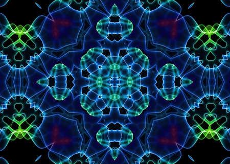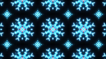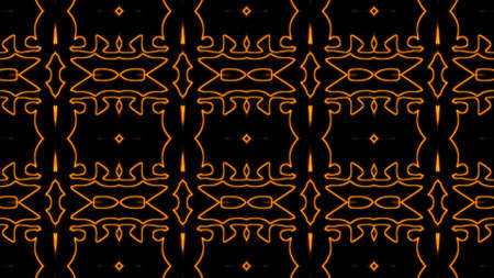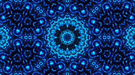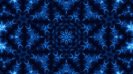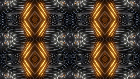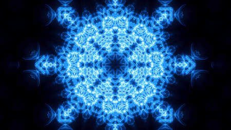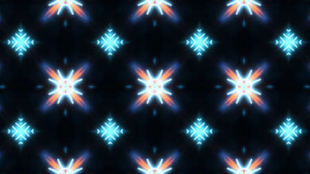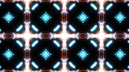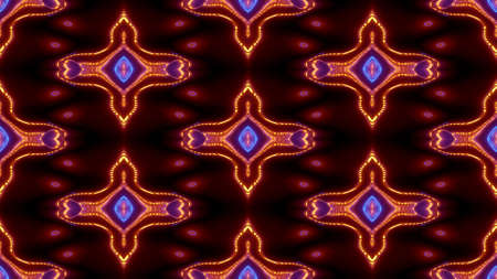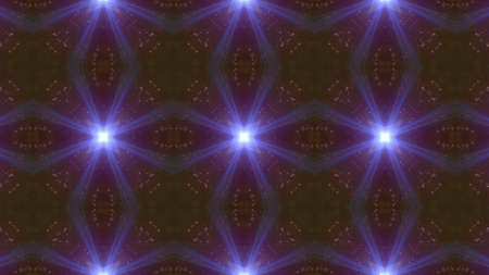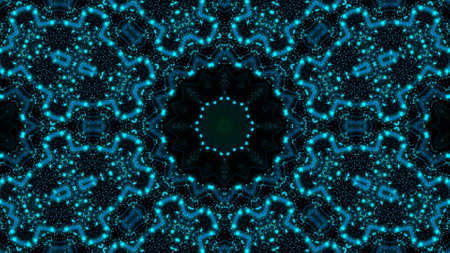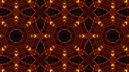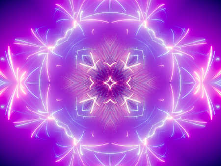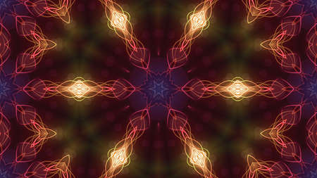 Abstract pattern bg. Flashing lines pattern like ornamental flower, star or mandala on plane like light bulbs or garland of curves lines. Kaleidoscope with neon flash ligts. 3d render