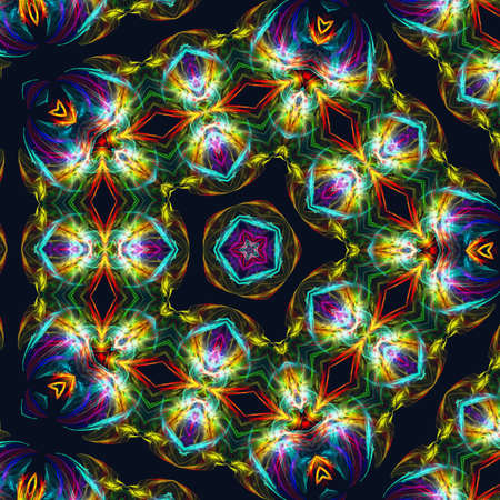 Seamless shape- kaleidoscope pattern. Ornamental fantasy- symmetrical fractal. decoration mosaic- mandala, psychedelic. Digital 2D illustration created without reference image