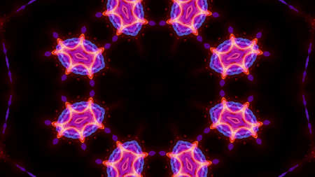 Abstract Colorful Shiny and Hypnotic Concept Symmetric Pattern Ornamental Decorative Kaleidoscope Movement Geometric Circle and Star Shapes