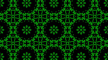 Abstract green geometric seamless pattern background. Psychedelic Colorful Kaleidoscope VJ background. Disco Abstract Background