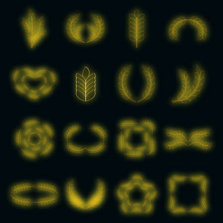 Ear corn icons set. Illustration of 16 ear corn vector icons neon color on black