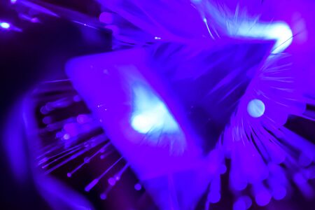 Fiber optical cables glowing blue. bokeh light spots