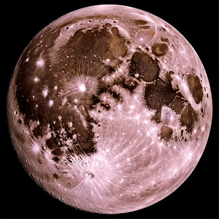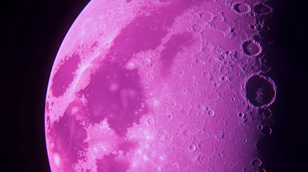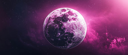 Mystical magenta moon with cosmic texture and chaotic patterns in deep space