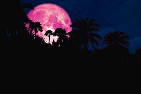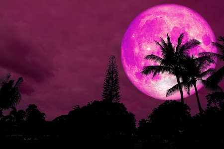 super pink moon back silhouette coconut palm tree, Elements of this image furnished by NASA
