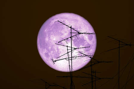 full crow moon back on silhouette atenna on night sky, Elements of this image furnished by