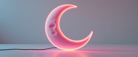 AI Generated. Neon Pink Crescent Moon Decor with Soft Glowing Light Effect