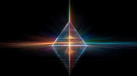 Discover a stunning pyramid structure illuminated by radiant light, set against a dark background for innovative and artistic themes. Perfect for inspiration and creativity.