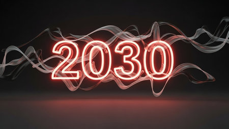 Glowing Red 2030 Numbers on Snowy Ground Aspirations, Goals and Milestones for the Future