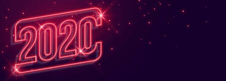 2020 Happy New Year Neon Text. 2020 New Year Design template for Seasonal Flyers and Greetings Card and Christmas themed invitations. Light Banner. Vector Illustration