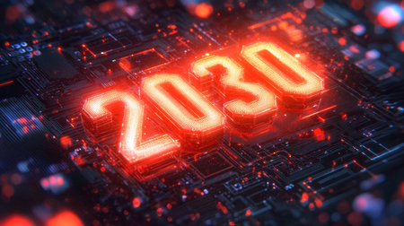 Glowing Digital 2030 On Futuristic Circuit Board Background, Symbolizing Technological Advancement