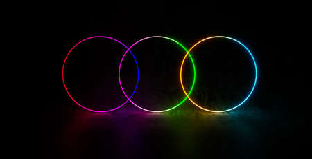 Three circle with neon light design, 3D illustrations rendering