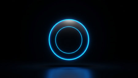 AI Generated. Neon blue color geometric circle on dark background