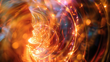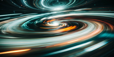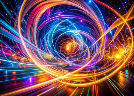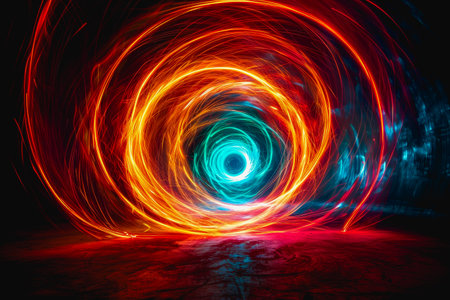 A captivating abstract swirl of vibrant lights creating an enchanting vortex effect, ideal for use in various visual projects or digital designs.