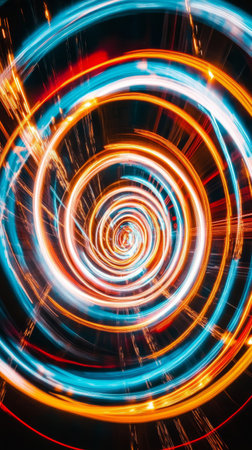 vibrant spiral light trails, abstract motion. artistic concept