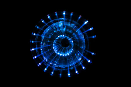 Spinning Neon LED Abstract lights form a centrally moving blur, radiating from a central core.