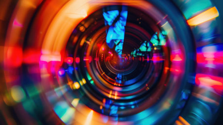 Close up of camera lens, vivid colors, depth of field..