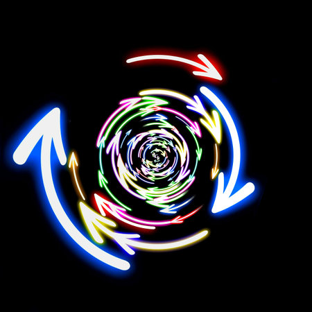3d illustration of swirling colorful light arrows