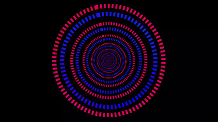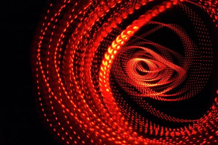 A captivating display of digital lights creates an abstract tunnel effect, filled with dynamic hues of red and blue. The lights pulsate and swirl, evoking a sense of movement and energy, as if inviting viewers to step into this vivid realm.