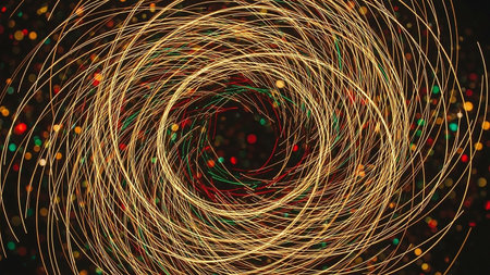 This image captures a mesmerizing display of golden spiral light trails against a dark background. The intricate patterns create a sense of movement and depth, evoking a feeling of wonder and fascination. The light trails are symmetrical and form a captivating circular design, highlighting the beauty of abstract art and the magic of light.