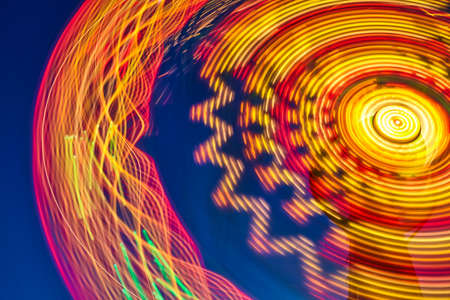 Abstract motion blur of carousel in the city at night time.