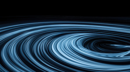 Mesmerizing rotating disc with fluid stains and ripples in aqua blue color on dark background. Digital element of design. Turquoise hue. Funnel of liquid. Great as cover print.